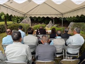 13番グリーン横にある磨崖仏や石仏はゴルフ場の造成時に発掘されたものです。こうした磨崖仏や石仏を現在地に集めて祀っています。毎年、東大寺塔頭新禅院住職・筒井英賢師(東大寺長老・筒井寛昭理事長のご子息)を導師にお迎えし供養しています。今年も昨日(11月19日)、午前9時からゴルフ場関係者が参列し執り行いました。