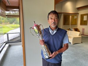 向山さんは初日35、39、74の2位タイで決勝進出。最終日も好調なショットとパットで36、35とスコアを伸ばし71、通算145で逆転し関西グランドシニア選手権を制覇しました。