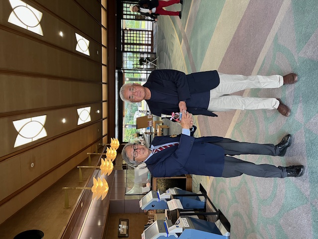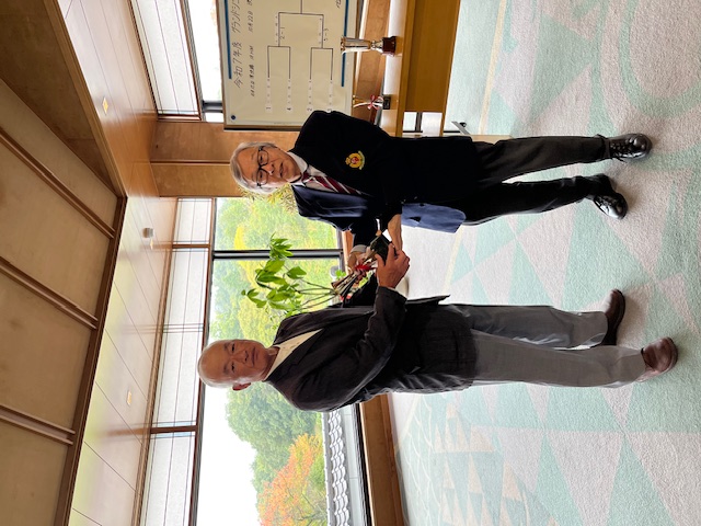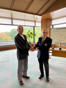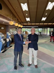 ※写真上:グランドシニアチャンピオン福岡さんにチャンピオン杯が阪口総支配人より贈呈。写真下:大西さんにランナースアップ賞が阪口総支配人より贈られた。
